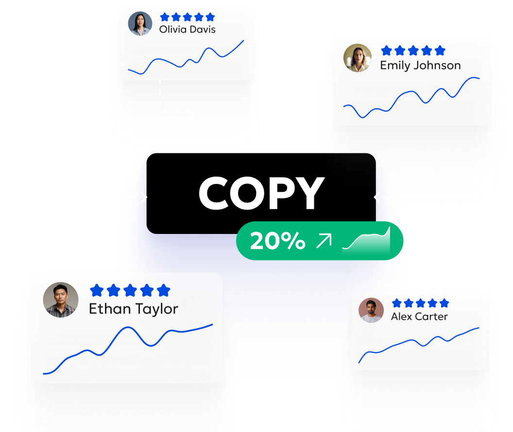 Seamlessly connect with the world's foremost trading talents and enhance your investment confidence. Streamline your trading journey by copying the trades of seasoned traders, backed by transparent performance statistics and fees.